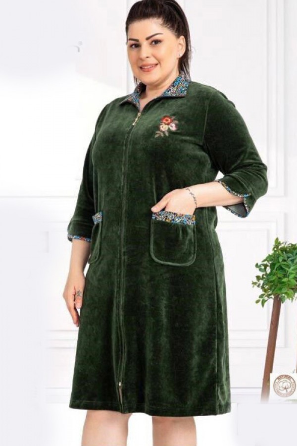 Халат жіночий велюровий на блискавці 3/4 рукав купити в Україні