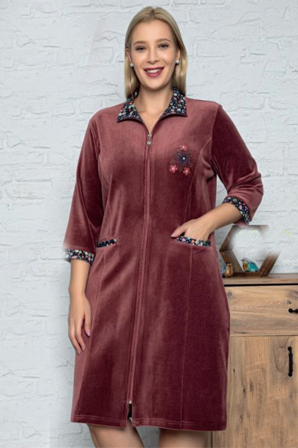 Халат жіночий велюровий на блискавці 3/4 рукав купити в Україні