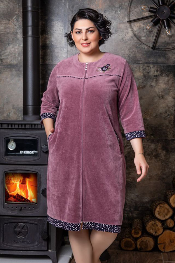 Халат жіночий велюровий на блискавці 3/4 рукав з кишенями купити в Україні