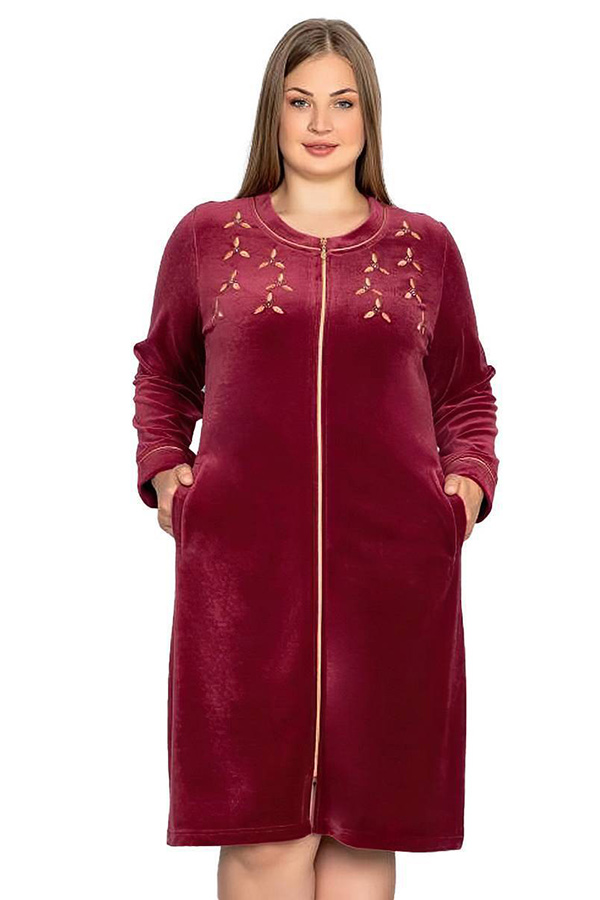 Халат жіночий велюровий на блискавці довгий рукав купити в Україні