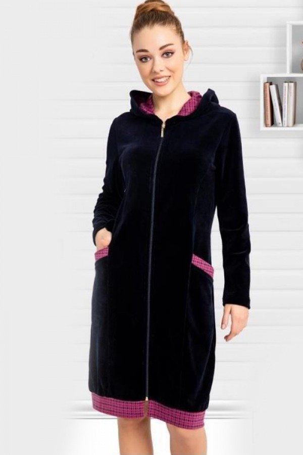 Халат жіночий велюровий на блискавці довгий рукав з капюшоном купити в Україні