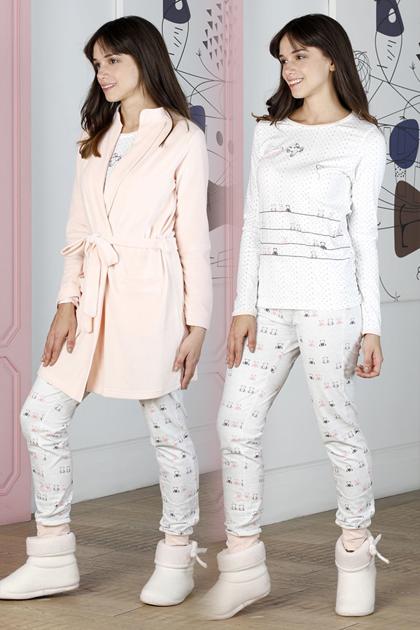 Комплект трійка штани на манжетах кофта довгий рукав і велюровий халат на запах купити в Україні