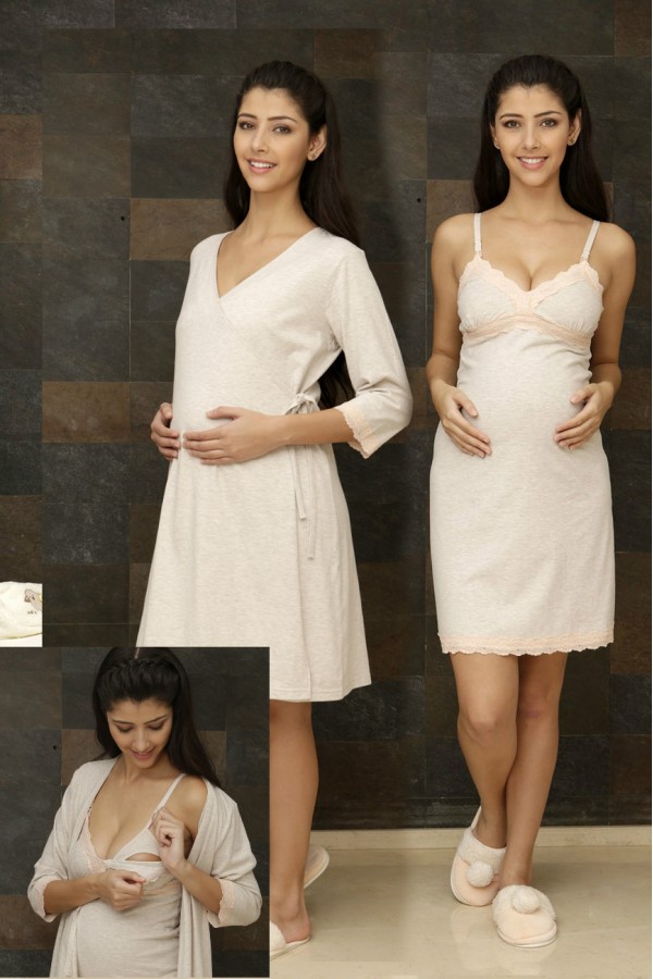Комплект жіночий халат на запах 3/4 рукав і нічна на бретелях для мам, що годують купити в Україні