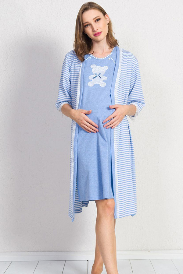 Комплект жіночий халат на запах 3/4 рукав та нічна сорочка для годування купити в Україні