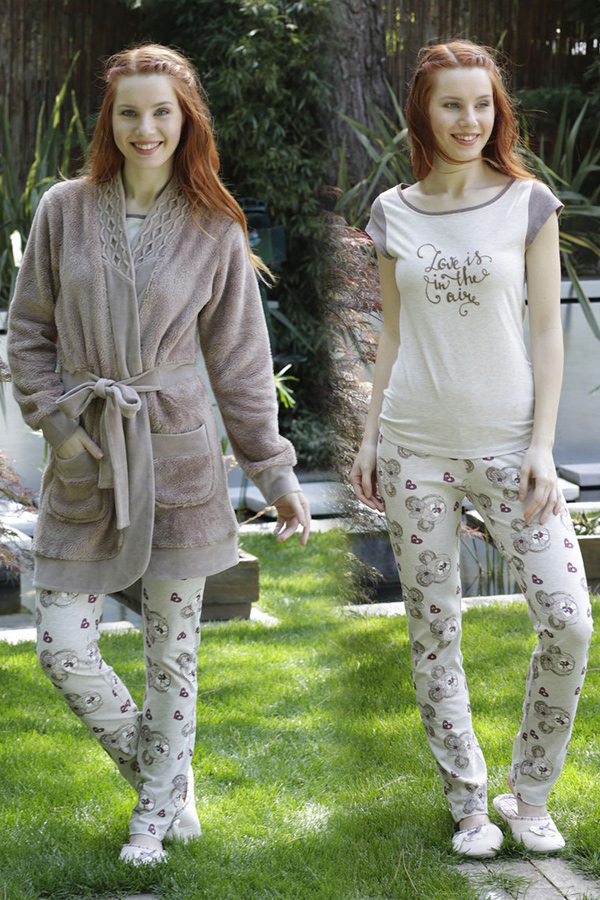 Комплект жіночий халат на запах піжама жіноча штани футболка короткий рукав купити в Україні
