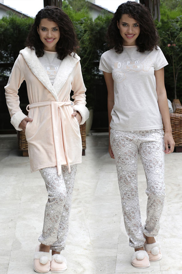 Комплект жіночий халат на запах піжама жіноча штани футболка короткий рукав купити в Україні