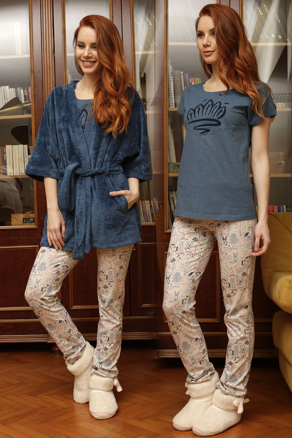 Комплект жіночий халат на запах піжама жіноча штани футболка короткий рукав купити в Україні