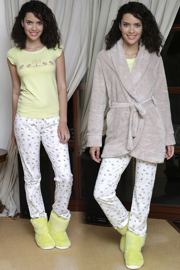 Комплект жіночий халат на запах піжама жіноча штани футболка короткий рукав купити в Україні