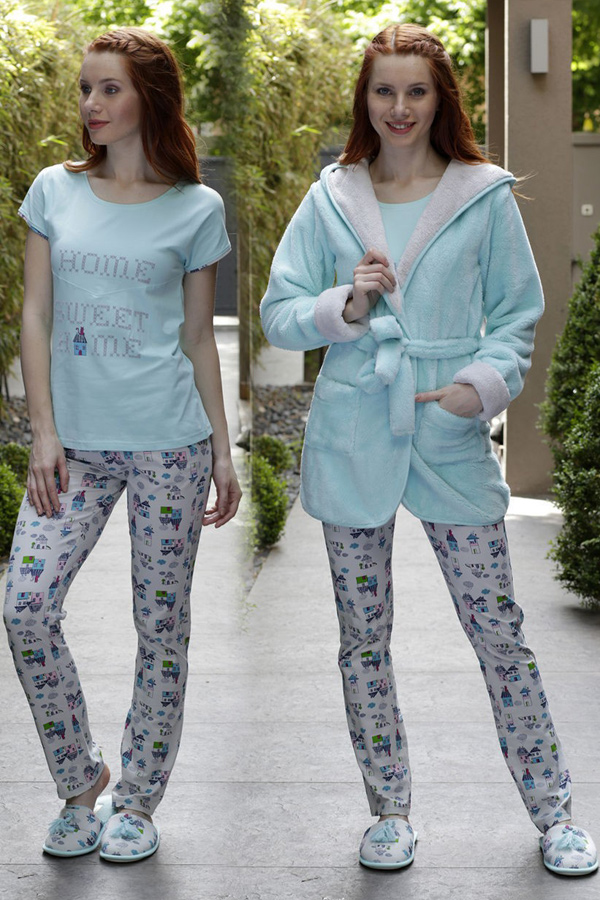 Комплект жіночий халат на запах піжама жіноча штани футболка короткий рукав купити в Україні