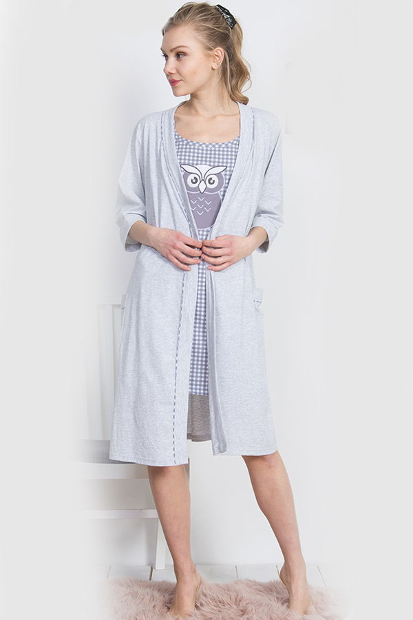 Комплект жіночий нічна сорочка та халат на запах 3/4 рукав купити в Україні