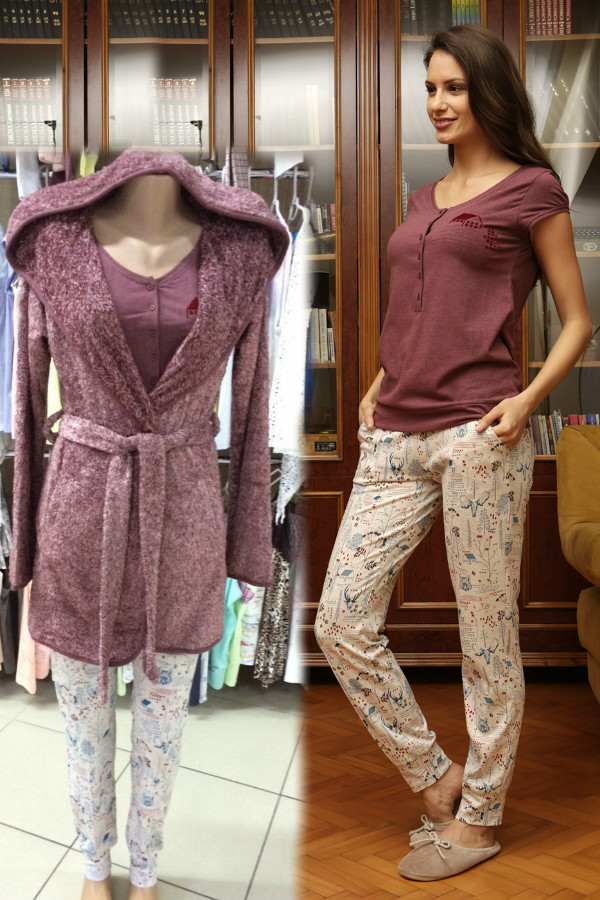 Комплект жіночий піжама штани футболка короткий рукав халат на запах софт купити в Україні