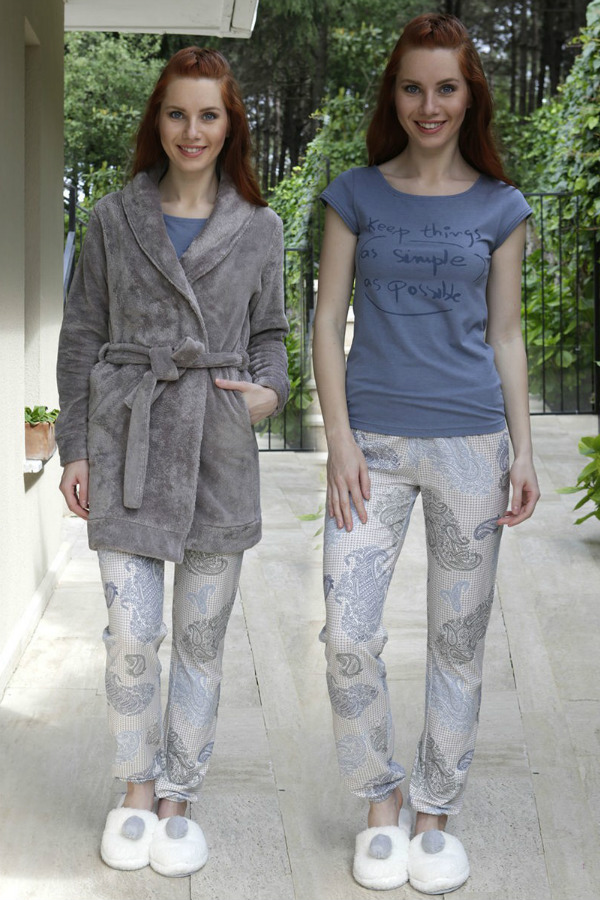 Комплект жіночий піжама штани футболка короткий рукав халат на запах софт купити в Україні