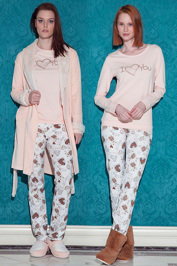Комплект жіночий велюровий халат на запах піжама брюки кофта довгий рукав купити в Україні
