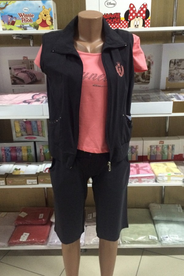 Костюм жіночий трійка бриджі жилетка футболка короткий рукав купити в Україні