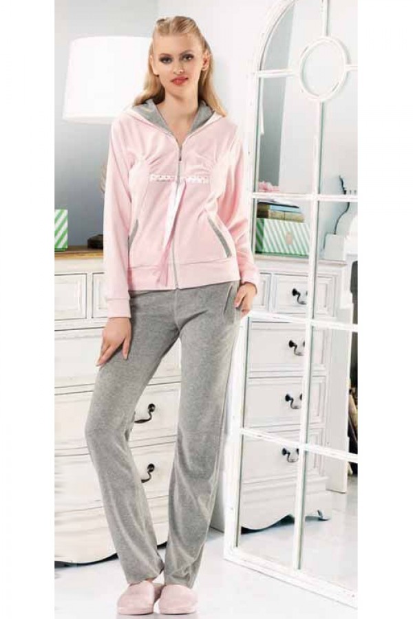 Костюм жіночий велюровий брюки кофта довгий рукав з капюшоном купити в Україні