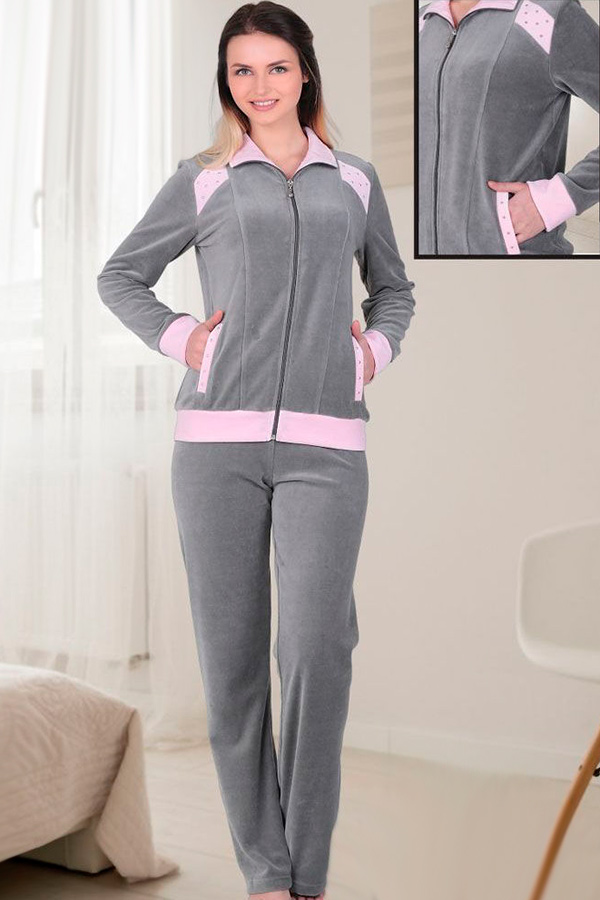Костюм жіночий велюровий штани кофта довгий рукав на блискавці купити в Україні