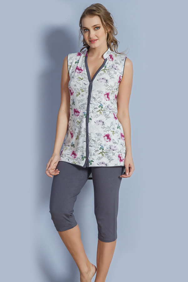 Костюм жіночий жіночий капрі кофта без рукав на гудзиках купити в Україні