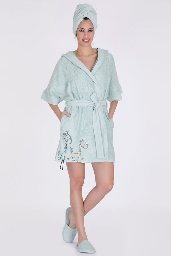 Набір халат на запах з капюшоном капці і рушники купити в Україні