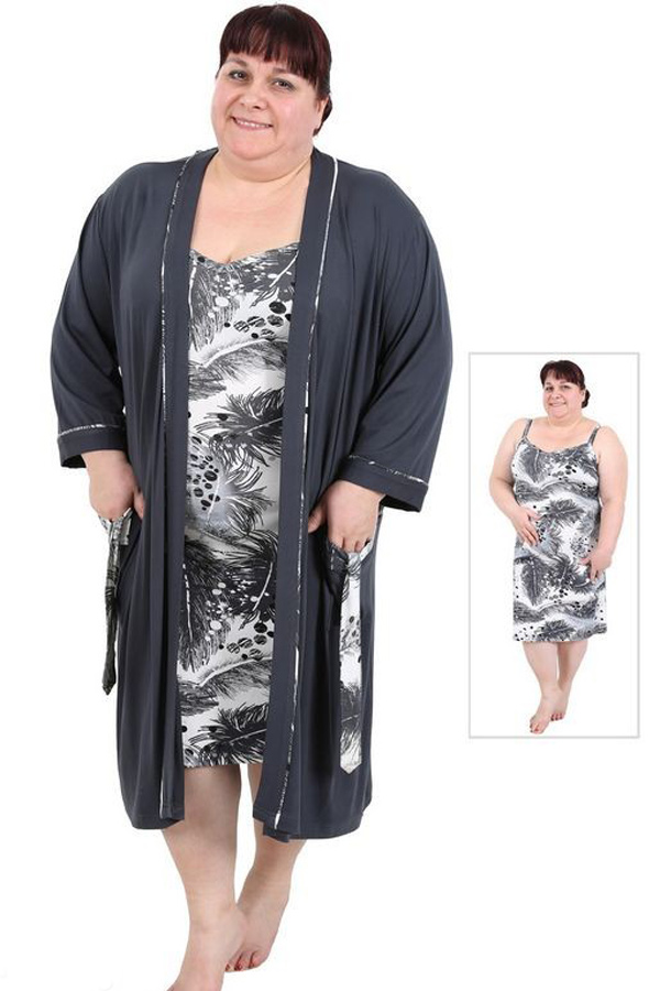 Набір жіночий нічна сорочка на бретелях халат на запах купити в Україні