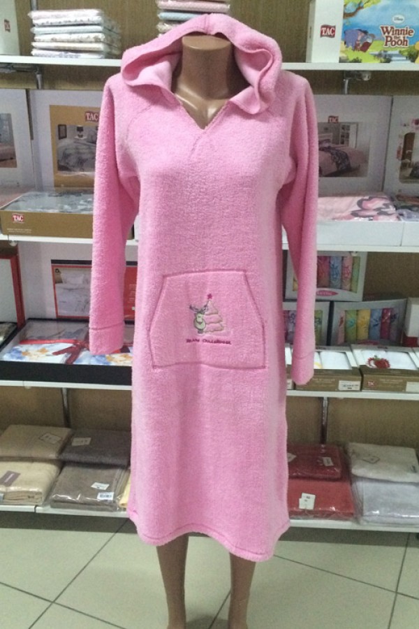 Нічна сорочка махрова довгий рукав з капюшоном купити в Україні