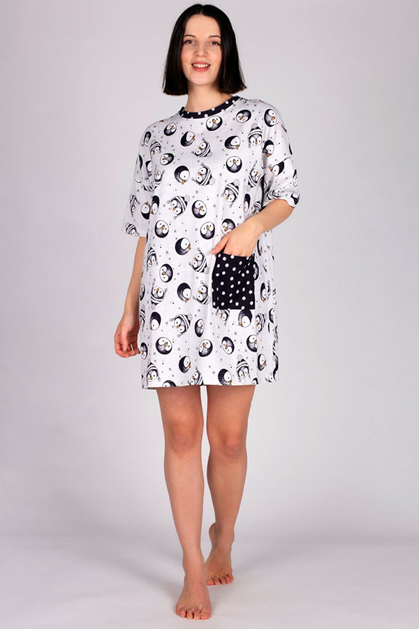 Нічна сорочка жіноча 3/4 рукав з кишенею купити в Україні