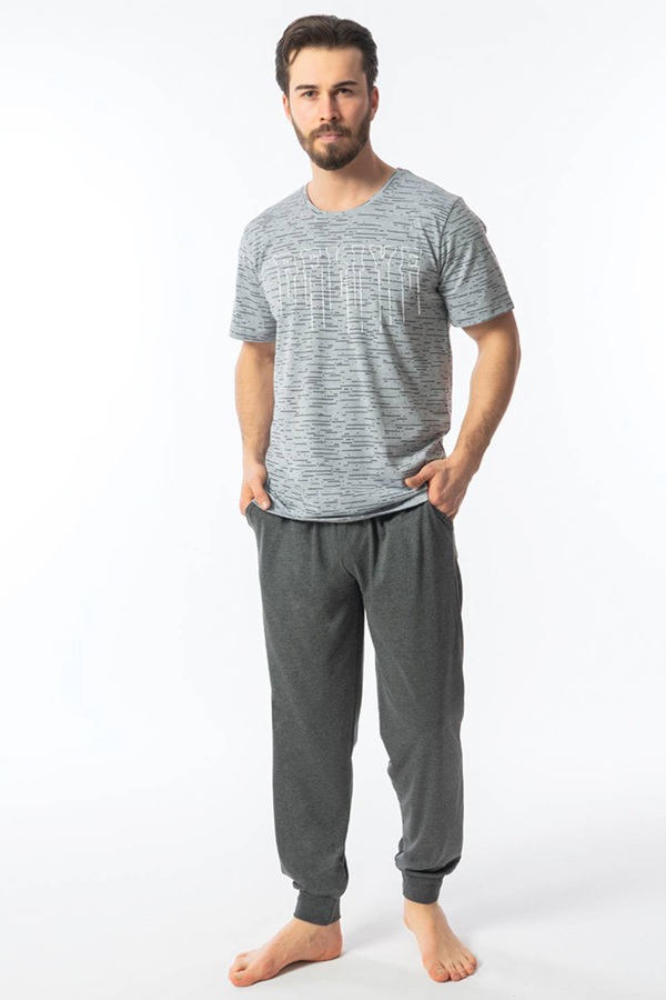Піжама чоловіча штани на манжетах короткий рукав купити в Україні