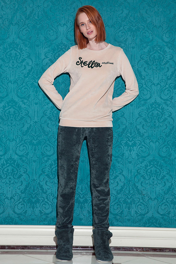 Піжама велюрова жіноча штани на манжетах кофта довгий рукав купити в Україні