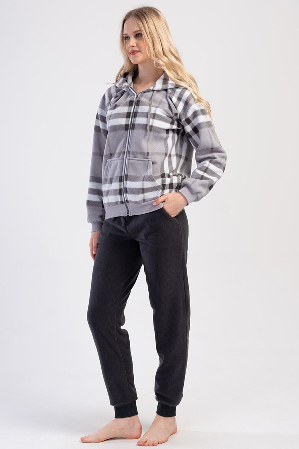 Пижама женская штаны на манжетах с карманами кофта длинный рукав на молнии флис купить в Украине