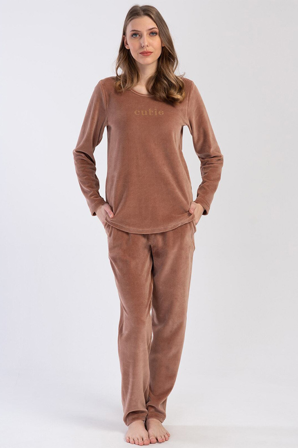 Пижама женская велюровая штаны с карманами кофта длинный рукав купить в Украине