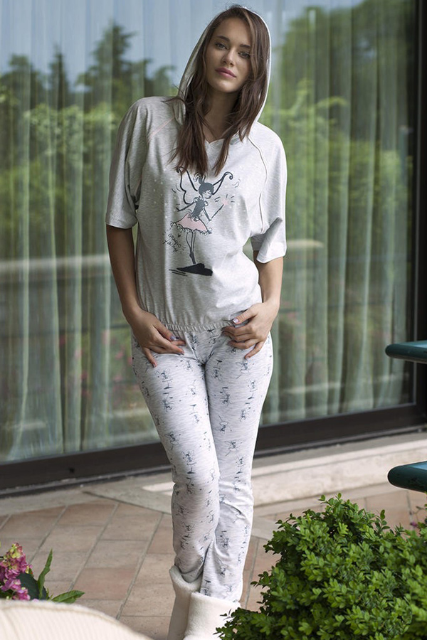 Піжама жіноча брюки футболка 3-4 рукав з капюшоном купити в Україні
