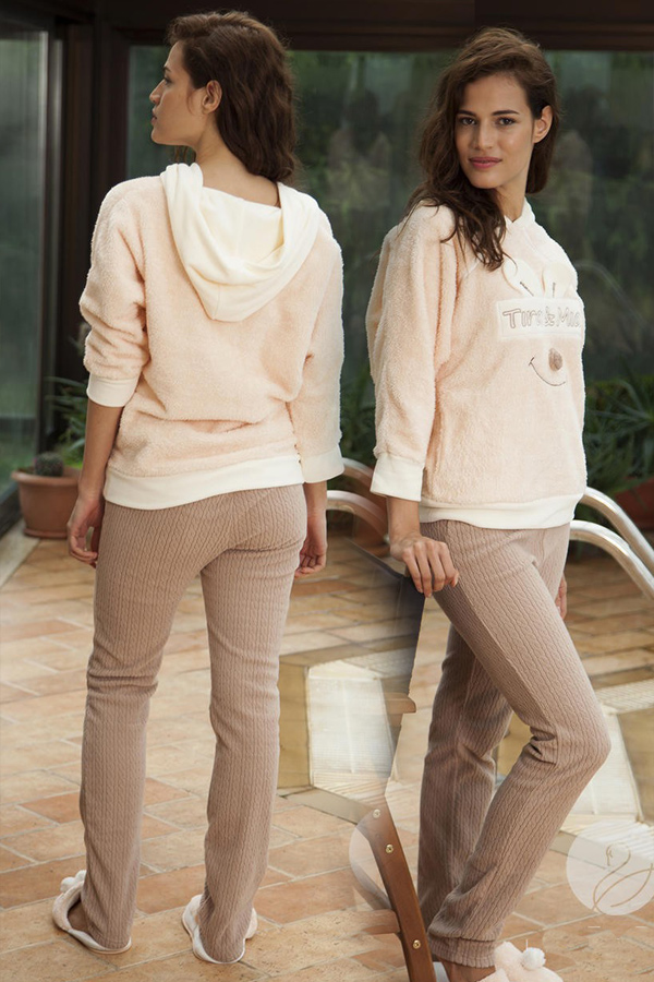 Піжама жіноча брюки кофта 3/4 рукав з капюшоном софт купити в Україні