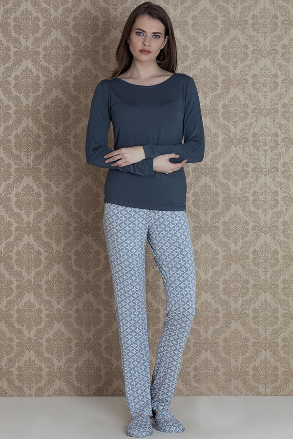 Піжама жіноча брюки кофта довгий рукав та капці купити в Україні