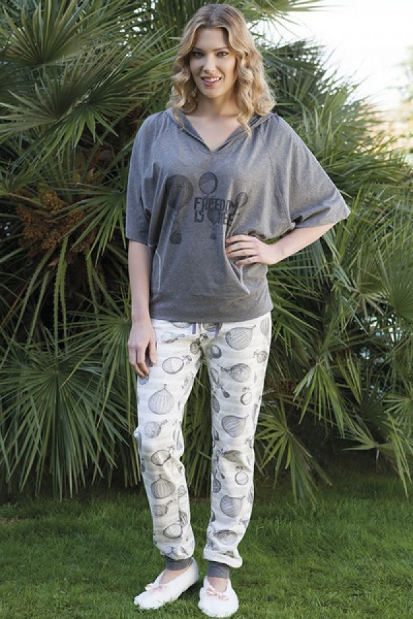 Піжама жіноча брюки на манжетах кофта з капюшоном 3/4 рукав купити в Україні