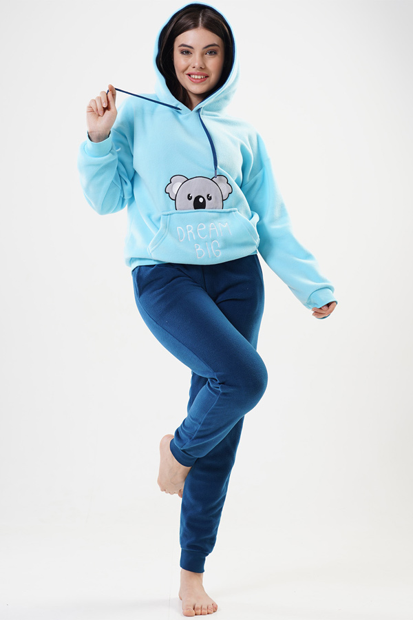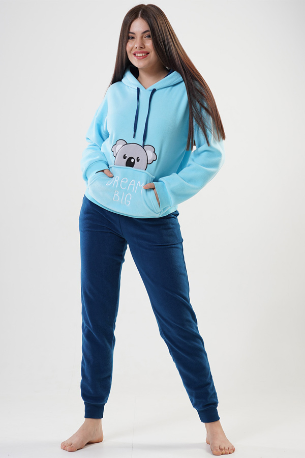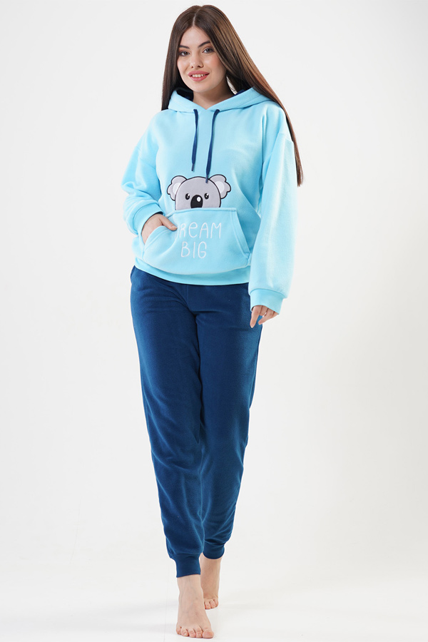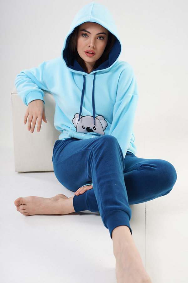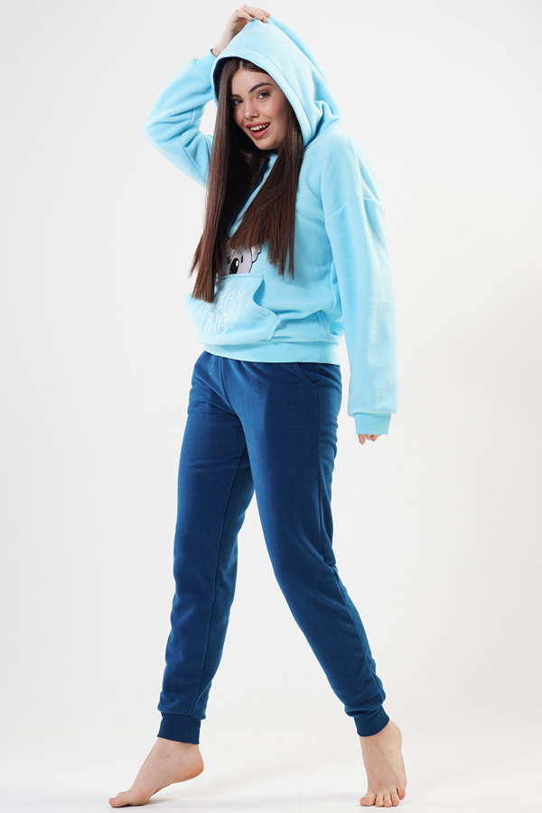 Піжама жіноча флісова штани на манжетах кофта з капюшоном довгий рукав купити в Україні