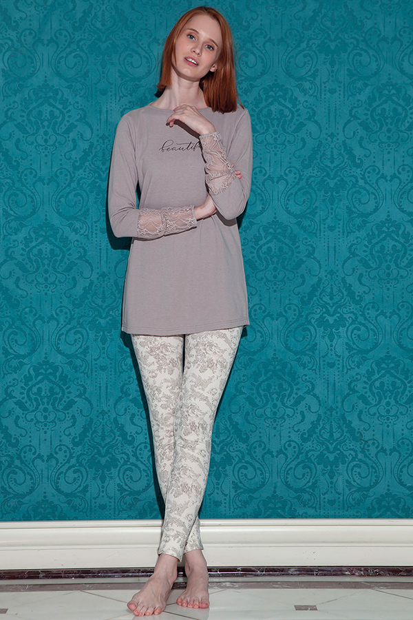 Піжама жіноча лосини кофта довгий рукав з гепюровими вставками купити в Україні