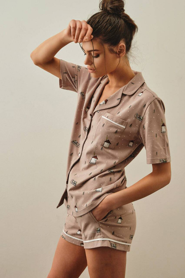Піжама жіноча шорти сорочка на гудзиках купити в Україні