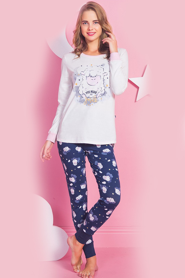 Піжама жіноча штани на манжетах кофта довгий рукав купити в Україні