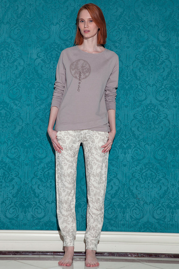 Піжама жіноча штани на манжетах кофта довгий рукав купити в Україні