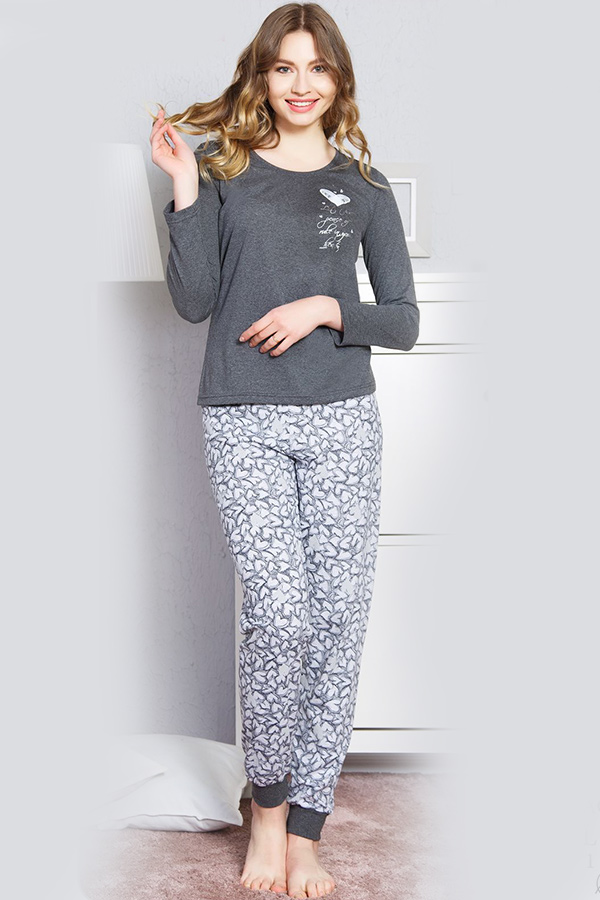 Піжама жіноча штани на манжетах кофта довгий рукав купити в Україні