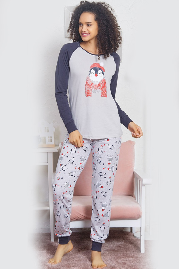 Піжама жіноча штани на манжетах кофта довгий рукав купити в Україні