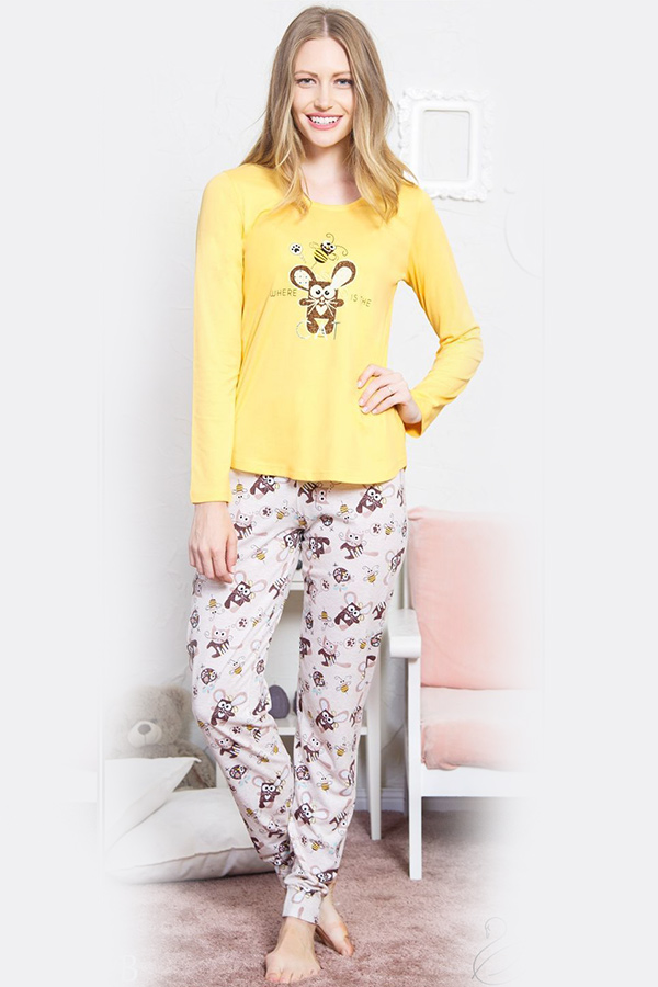 Піжама жіноча штани на манжетах кофта довгий рукав купити в Україні