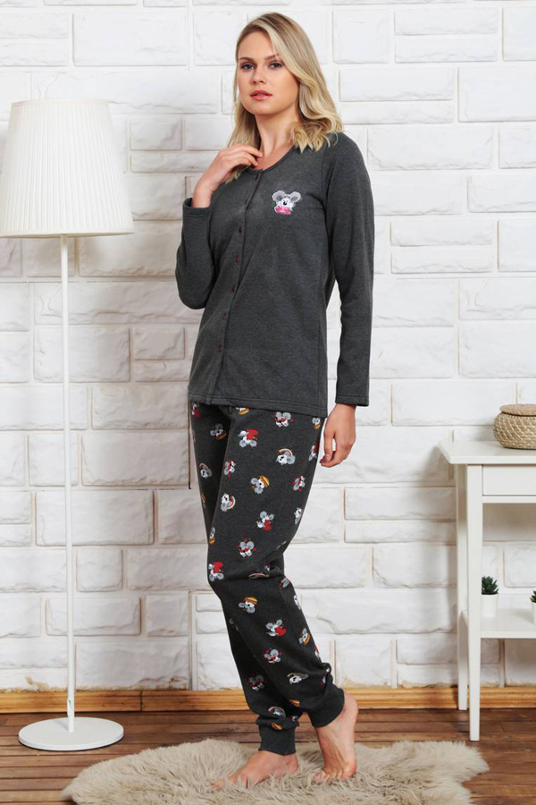 Піжама жіноча штани на манжетах кофта на гудзиках довгий рукав на байці купити в Україні