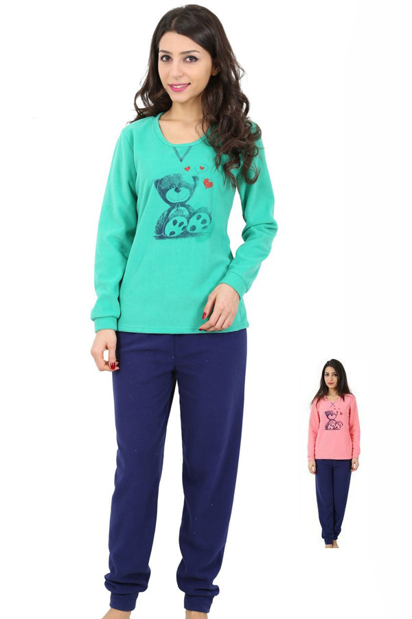 Піжама жіноча штани на манжеті кофта довгий рукав персикова фліс купити в Україні