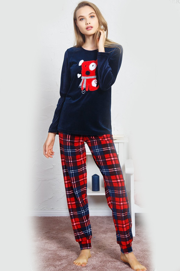 Піжама жіноча велюрова штани на манжетах кофта довгий рукав купити в Україні