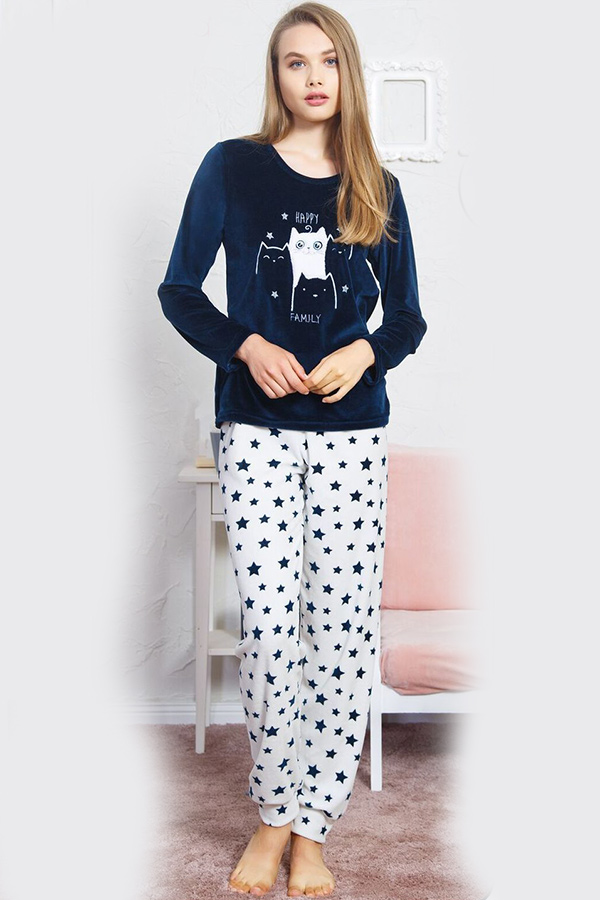 Піжама жіноча велюрова штани на манжетах кофта довгий рукав купити в Україні