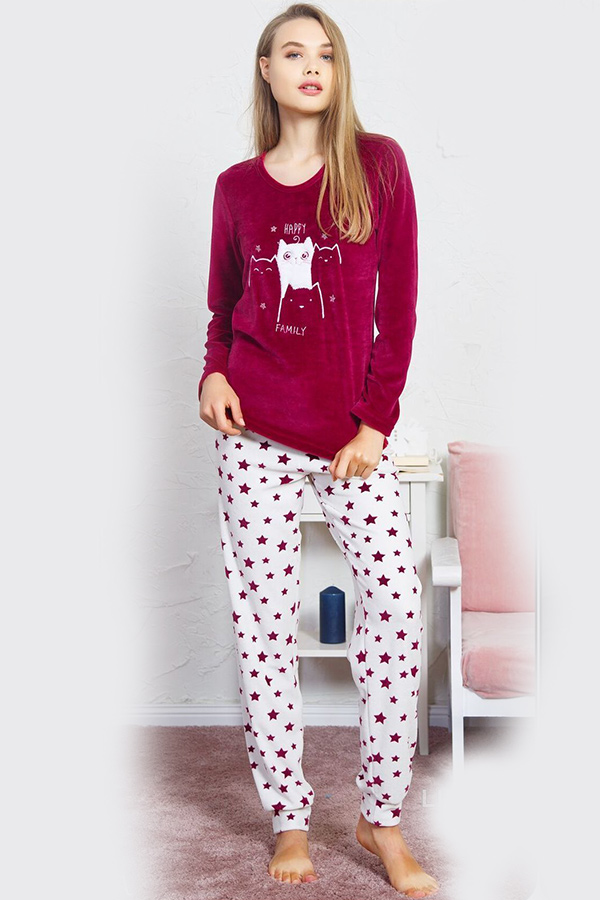 Піжама жіноча велюрова штани на манжетах кофта довгий рукав купити в Україні