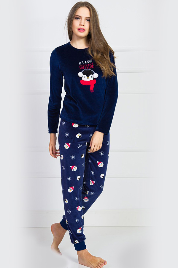 Піжама жіноча велюрова штани на манжетах кофта довгий рукав купити в Україні
