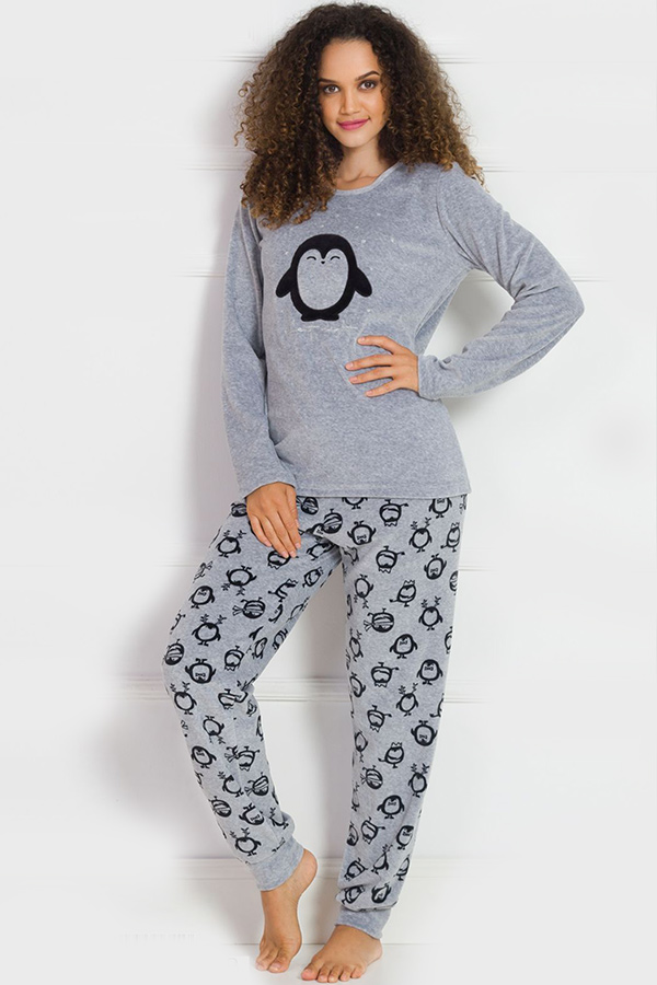 Піжама жіноча велюрова штани на манжетах кофта довгий рукав купити в Україні