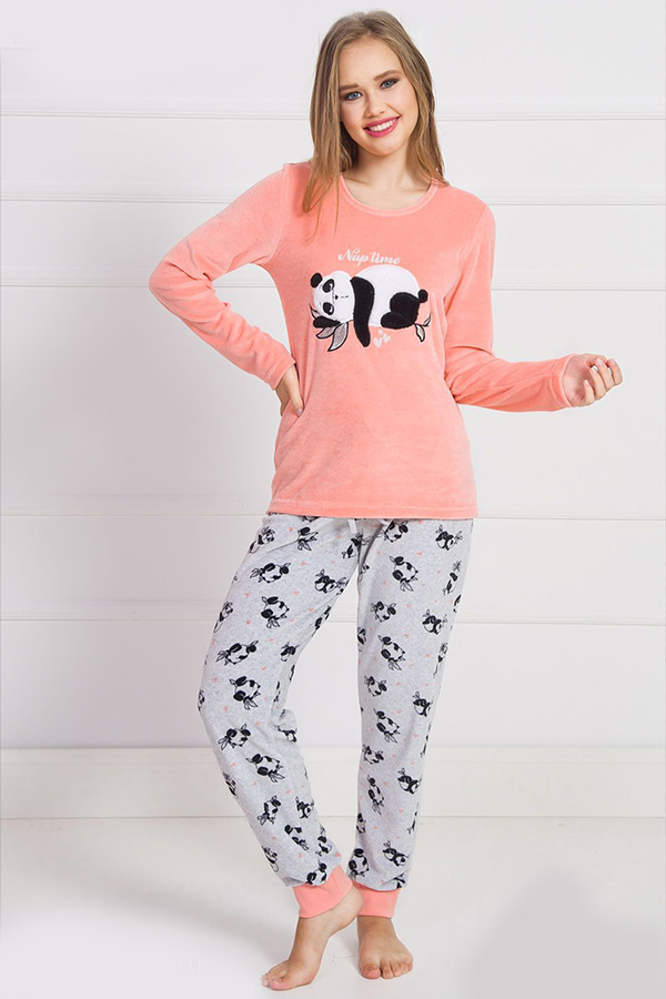 Піжама жіноча велюрова штани на манжетах кофта довгий рукав купити в Україні