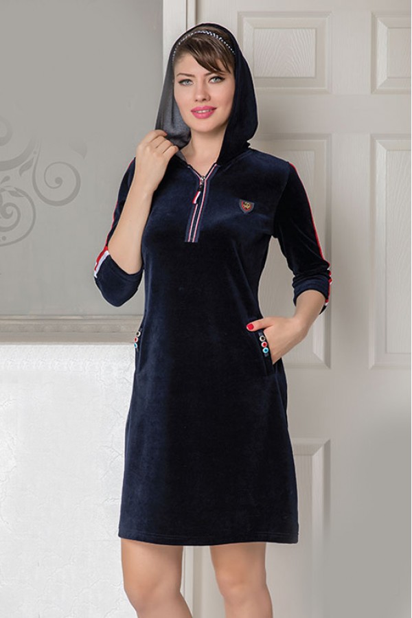 Туніка жіноча велюрова 3/4 рукав з капюшоном купити в Україні
